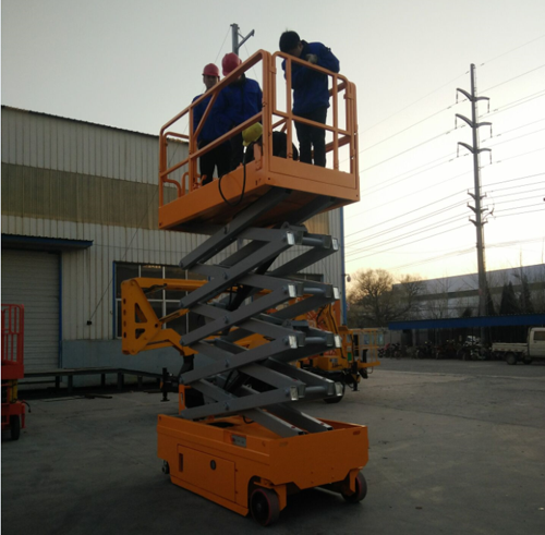 自行剪叉式升降機具有自動行走功能,整機一體式設計,內置電瓶電源,滿足在不同工作狀態下,不需外接電源,不需外來動力牽引即可升降自如,而設備的行走轉向也只需一人便可完成。操作人員只需掌握好設備前的控制手柄即可完成設備前進、后退、轉向、快、慢速行走和上下等動作。自行剪叉式升降平臺移動靈活,操作方便、省工、省力令高空作業更方便快捷,是現代企業高效安全生產之理想高空作業設備。